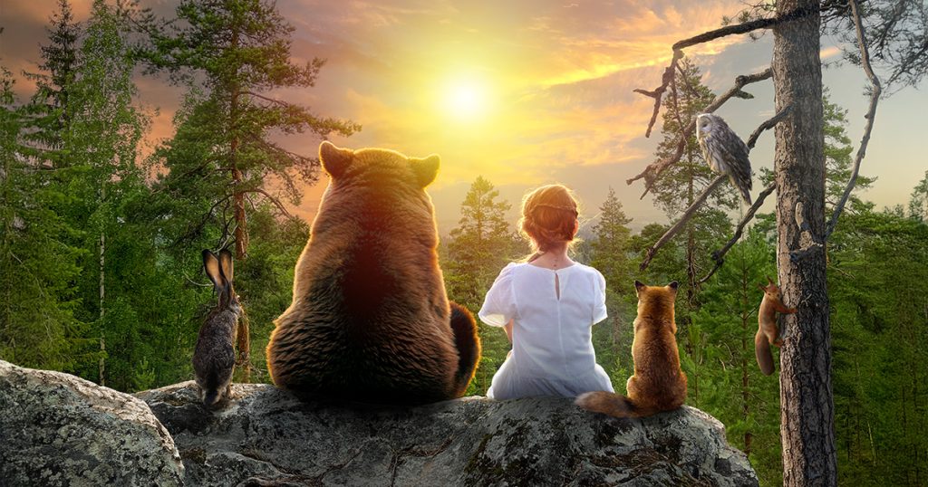 Tyttö, eläimet ja ilta-aurinko – näin syntyi Eläinten jäljillä -kuva