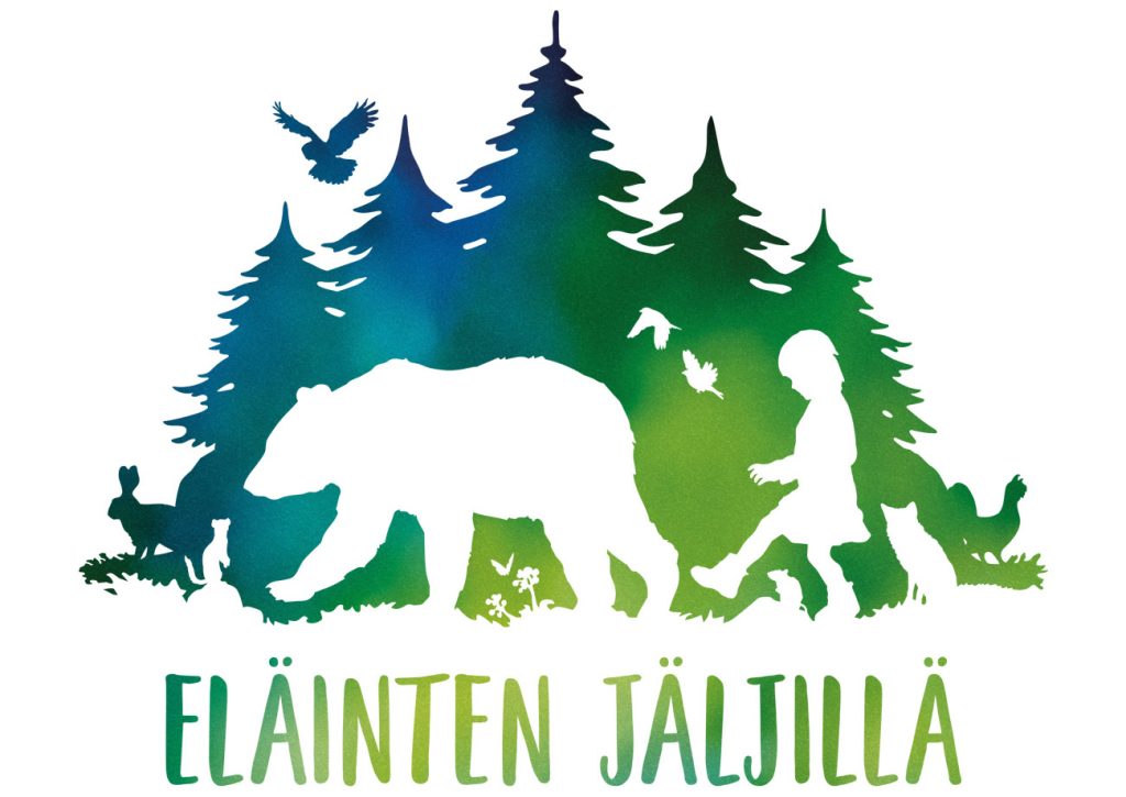 ”Kuvan tilanne liittyy logossa esitettyyn pienoistarinaan, jossa tyttö kävelee metsässä eläimet seuranaan. Logossa hahmot on esitetty silhuetteina, ja minua kiehtoi ajatus realistisemmasta esitystavasta. Kuvassa joukkio on retken päätteeksi istahtanut kalliolle ihailemaan ilta-aurinkoa”, Koivusilta kertoo kuvan taustatarinasta.