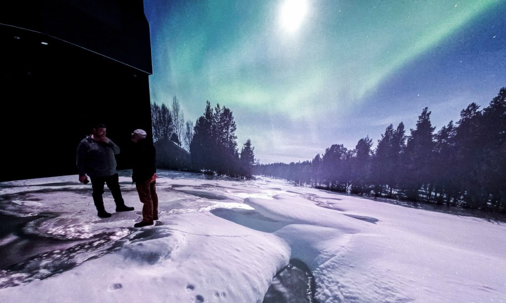 You can go on an aurora trip too: ride a snowmobile simulator into wintery scenery and watch northern lights glow upon the skies.